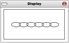 public class Example3{ Example3(){} IChain ch = new Link(new Link(new Link( new Link(new Link(new Link(new End())))))); Scene scn = this.ch.place(40, new EmptyScene(200, 100)); public static void main(String[] args){ World.display(new Example3().scn); } }Running this example results in a window similar to the following: