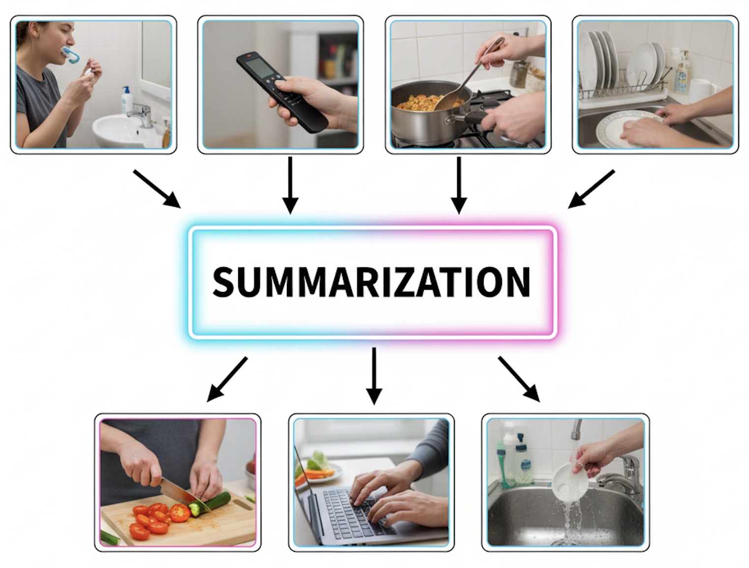 Developing scalable video summarization methods that handle structured dependencies in long and complex videos with minimum/no supervision.